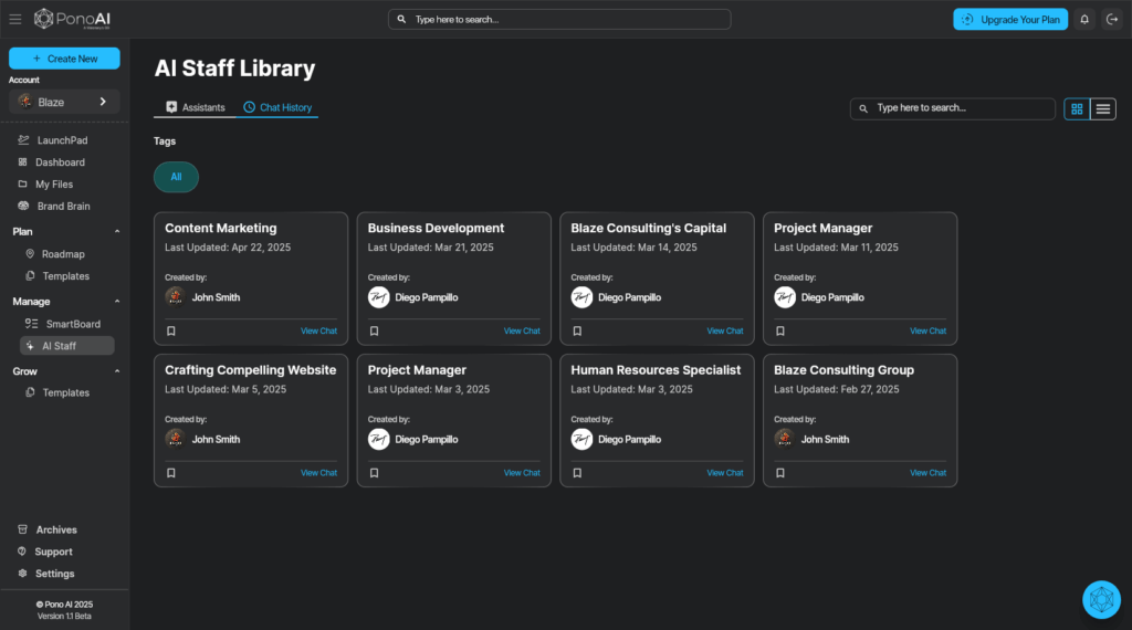 The AI Staff feature includes custom virtual assistants designed to help tackle specific business tasks and challenges. These intelligent virtual team members are fully informed about your brand’s goals, strategies, and needs, minimizing the need to hire additional personnel.